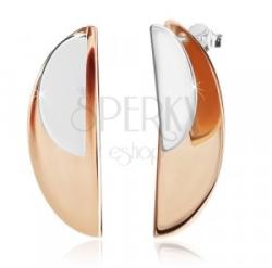 A 925 ezüst fülbevaló két ívből áll. A kisebb, ezüst színű stabilan rögzített és közvetlenül a nagyobb elé van helyezve. A nagyobb, réz színű mozgatható. Felülete fényes és sima. Stekkeres zárszerkezet. A fülbevaló mérete: 10 x 29 mmA fülbevaló súlya: 3,1 gFémjelzéssel ellátva. Az ár egy párra vonatkozik.