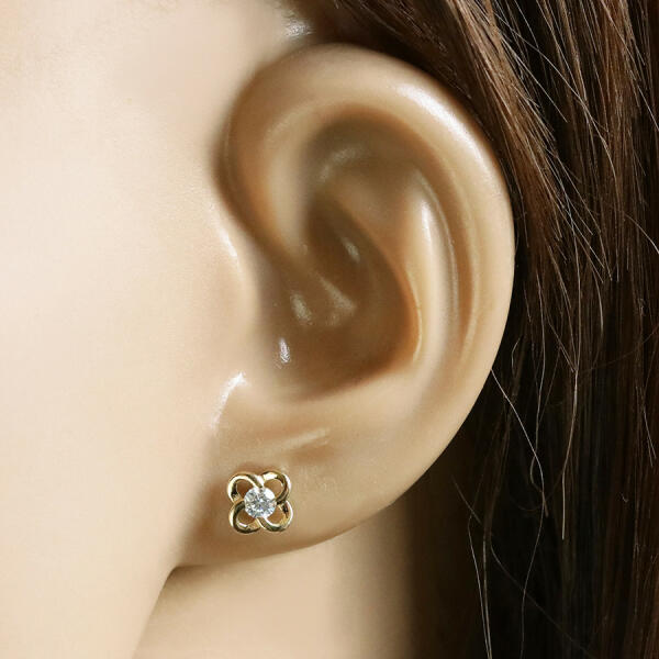 Az 585 sárga arany fülbevalót egy virág díszíti, amely négy szirom körvonalból áll, amelyeknek a közepén egy-egy kivágás található. A szirmok átfedik egymást. A virág közepében egy kerek átlátszó cirkónia található. A fülbevaló felülete sima és fényes. Stekkeres zárszerkezet. A fülbevaló mérete: 6 x 6 mmA fülbevaló súlya: 0,74 gFémjelzéssel ellátva. Az ár