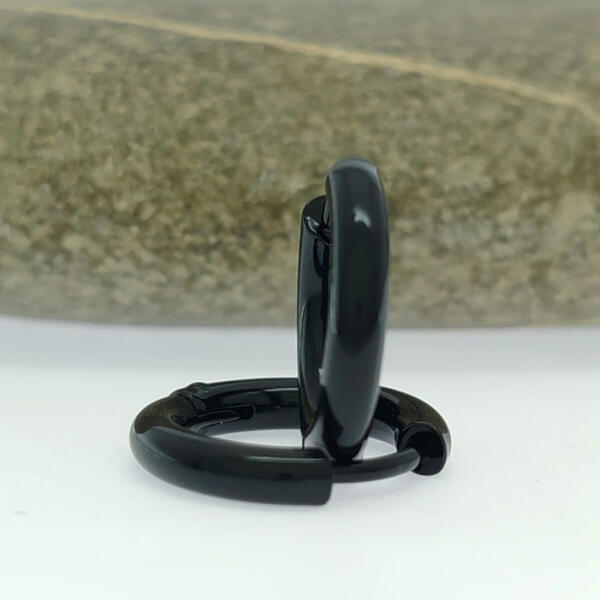 Feketeszínű nemesacél ( 316L ) karika fülbevaló. Időtálló darab, mindennapi használatra is tökéletes választás. Antiallergén ékszer. Belső átmérője: 8 mm. Fülbevaló szélessége: 2,5 mm. A nemesacél ékszerek rendkívül népszerűek kedvező tulajdonságaik miatt. A nemesacél semmilyen nikkelsót nem bocsájt ki magából, ennek következtében teljesen allergiamentes, semm