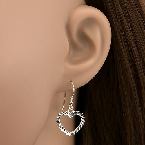 925-ös ezüst fülbevaló, az afrikai akasztó alatt egy szabályos szívkörvonallal, melynek a fényes felületét hullámos bevágások díszítik. Méretei: 16 x 14 mmA fülbevaló súlya: 1,4 gAz ár egy párra vonatkozik. Fémjelzéssel ellátott.