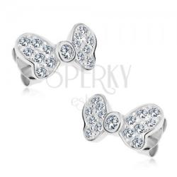 A 925 ezüst fülbevalót beültetett, átlátszó cirkóniákkal díszített masni alkotja. A masni közepén egy nagyobb, kerek, átlátszó cirkónia található, amely kiemelt, fényes foglalatba van elhelyezve. Biztonságos viselését stekker teszi lehetővé. A fülbevaló felülete ródiummal kezelt. Fülbevaló méretei: 12 x 6 mmFülbevaló súlya: 1,3 gFémjelzéssel ellátott. Az ár e