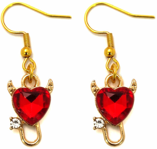 Anyaga fémötvözet és kristály. Piros ördög szív fülbevaló. Param éterek: Medál / mérete kb. 2 cm. Anyaga fémötvözet. Akasztó rozsdamentes acél.