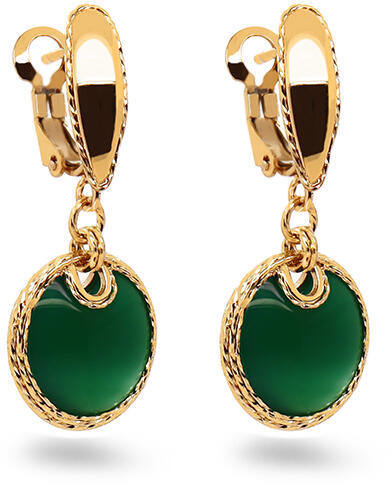 Egyedi arany fülbevaló zöld acháttal, modell IZ30625N