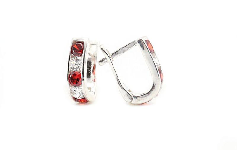 Ez az egyik legcsillogóbb fülbevalónk! A 925-ös tisztaságú ezüstből készült fülbevalóban a vörös és fehér kis cirkónia kövek gyönyörűen szikráznak a rájuk eső fényben.