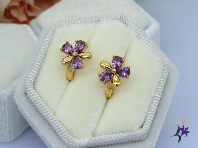 Gold Filled kis Lila virágos karika fülbevaló Szin: 18K Méret: 7mm x12mm Zár: karika belső méret 10mm A forgalmazott divatékszerek alapanyaga nikkel és ólommentes ezért többnyire nem okoznak allergiás tüneteket, nyugodtan hordhatják fémérzékeny emberek is. Általában nem színezik a bőrt és más divatékszerekhez képest nagyságrendekkel jobb kopásállósággal rendelkeznek.