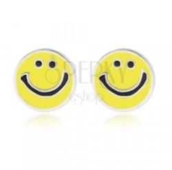 A 925 ezüst fülbevaló egy kerek smiley ikon motívummal készült. Az arcot élénksárga fénymáz díszíti. A szemeket két fekete pont alkotja, a smiley szája egy fekete lekerekített vonalból áll. Az arc vonásait ezüst vonalak határolják. Stekkeres zárszerkezet. A fülbevaló mérete: 9 x 9 mmA fülbevaló súlya: 1,4 g Fémjelzéssel ellátva. Az ár egy párra vonatkozik.