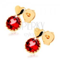Fülbevaló 9K sárga aranyból mérsékelten kidomborodó szív alakban, amely alatt egy kerek, piros gránát helyezkedik el dísz foglalatban rovátkolt széllel. A fülbevaló hátsó oldala üreges. Biztonságos viselését stekker biztosítja. A fülbevaló méretei: 4 x 7 mmA fülbevaló súlya: 0,5 gFémjelzéssel ellátott. Az ár egy párra vonatkozik.