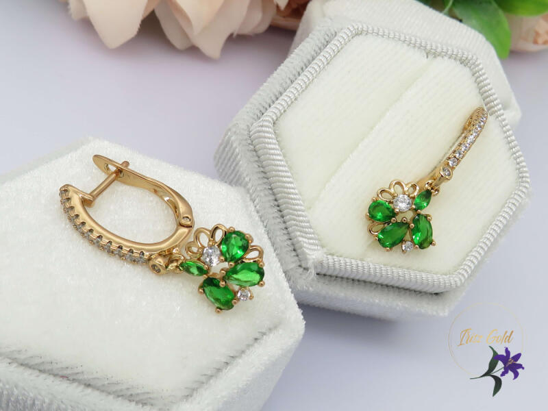 Antiallergén gyönyörű zöld virágos csüngűs fülbevaló Szin: 18K Méret: 30x14x-10mm Zár: francia kapocs mélysége 12mm A forgalmazott divatékszerek alapanyaga nikkel és ólommentes ezért többnyire nem okoznak allergiás tüneteket, nyugodtan hordhatják fémérzékeny emberek is. Általában nem színezik a bőrt és más divatékszerekhez képest nagyságrendekkel jobb kopásálló