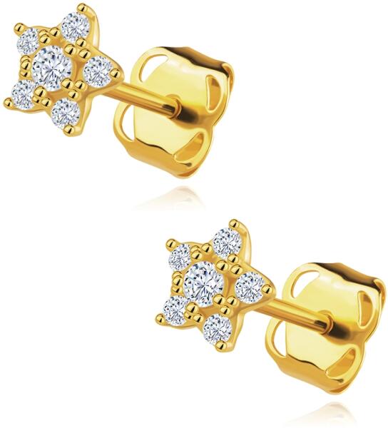 Az 585 arany fülbevalót egy csillogó, kerek, átlátszó cirkónia alkotja. A cirkónia hat fényes pálcával van rögzítve, amelyek laposak és lekerekített végűek. Biztonságos viselését stekker teszi lehetővé. Fülbevaló átmérője: 4 mmFülbevaló súlya: 0,50 gFémjelzéssel ellátott. Az ár egy párra vonatkozik.