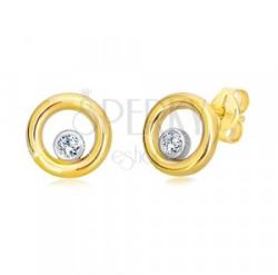 14K kombinált arany fülbevaló, keskeny karika csillogó cirkóniával. A karika széle lekerekített és sima, tükörfényes felületű. Az alsó részén egy csiszolt, kerek, átlátszó cirkónia található amelyet fehér arany vesz körül. A fülbevaló biztonságos viselésést stekker teszi lehetővé. Fülbevaló mérete: 8 mmFülbevaló súlya: 0,5 gFémjelzéssel ellátott. Az ár eg