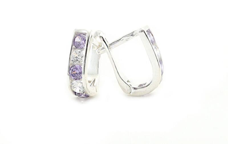 Ez az egyik legcsillogóbb fülbevalónk! A 925-ös tisztaságú ezüstből készült fülbevalóban a lila és fehér kis cirkónia kövek gyönyörűen szikráznak a rájuk eső fényben.