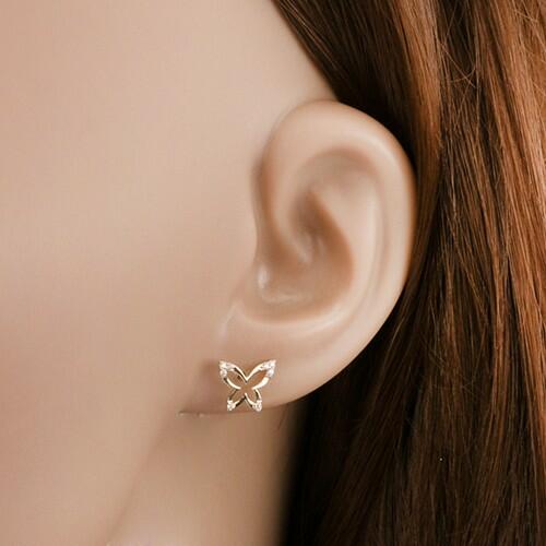 375 arany beszúrós fülbevaló pillangó körvonal alakban, mely felszíne fényes és sima, miközben a szárai csúcsai kis átlátszó beültetett cirkóniákkal díszített. Biztonságos viselését stekker biztosítja. A fülbevaló méretei: 10 x 8 mm A fülbevaló súlya: 0,4 gFémjelzéssel ellátott. Az ár egy párra vonatkozik.