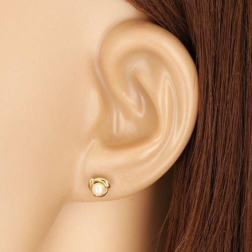 375 sárga arany fülbevaló, fényes könycseppek a gyöngy körül. Mindegyik könnycsepp formája enyhén ívelt. Középen egy gömbölyű, tenyésztett gyöngy helyezkedik el, fehér színben. Zárszerkezete stekkeres. Fülbevaló mérete: 5 x 5 mmGyöngy átmérője: 3 mmSúly: 0,4 gFémjelzéssel ellátott. Az ár egy párra vonatkozik. A tenyésztett gyöngy apró idegen anyag behelyezés