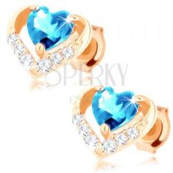 Vékony, fényes szívecse kontúrból álló 14K sárga színű arany fülbevaló, amelynek az alsó része kerek, tiszta cirkóniákkal díszített. A körvonal közepén csiszolt, szív alakú topáz van elhelyezve, kék árnyalatban. Biztonságos viselését a stekker biztosítja. A fülbevaló méretei: 8 x 7 mmA fülbevaló súlya: 0,7 gFémjelzéssel ellátott. Az ár egy párra vonatkozik.