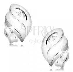 14K fehér arany fülbevaló amelyet két fényes könnycsepp alkot melyek hullámos sávval vannak elválasztva egymástól. Az egyik cseppben egy átlátszó, kerek cirkónia található. A fülbevaló biztonságos viselését stekkeres zárszerkezet teszi lehetővé. Fülbevaló méretei: 6 x 10 mmSúly: 0,6 gFémjelzéssel ellátott. Az ár egy párra vonatkozik.
