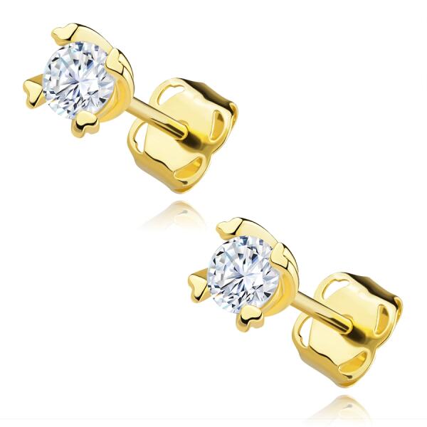 Dekoratív rész átmérője: 3,5 mmA fülbevaló súlya: 0,42 gFémjel - Van. Az ár egy párra vonatkozik. 9K sárga arany fülbevaló kerek átlátszó cirkóniával A 9Ksárga aranyból készült fülbevaló átlátszó, kerek alakú cirkóniával készült. A kerek átlátszó cirkónia biztonságosan egy dekoratív tartóba van rögzítve. A tartónak szív alakú, ívelt feje, kiterjesztett