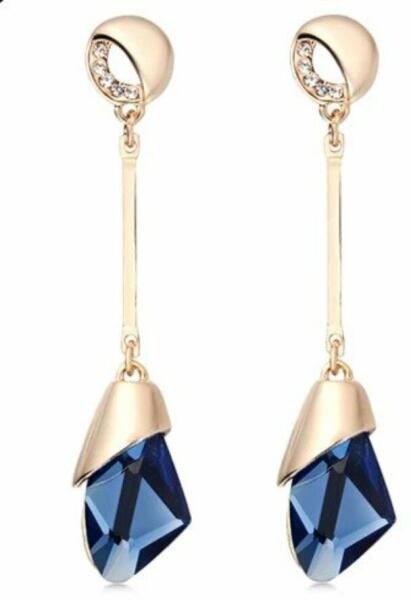 Igényes kidolgozású arany színű fülbevaló látványos kristállyal. Garantáltan nem maradnak el az elismerő pillantások, ha ezt felveszed hétköznap, vagy akár buliba... Hossza kb. 7 cm. Fémötvözet és kristály. Egy jól megválasztott ékszer öltöztet, feldobja a napodat, valahányszor ránézel, jobb kedvre derülsz. A színekkel és anyagokkal manapság könnyű variálni a k