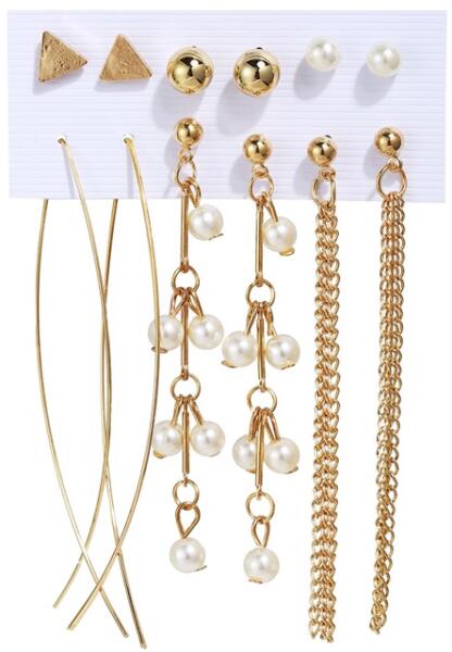 Jazlyn Fülbevalószett Jazlyn fülbevalószett szuper áron. A szett 6 pár különböző formájú, méretű és díszítésű fülbevalót tartalmaz. Nem tartalmaz nikkelt, ezért érzékeny bőrű emberek is viselhetik. Tulajdonságok: Anyaga: Fém ötvözet Szín: Arany A fülbevalók mérete: 0,5cm - 6cm