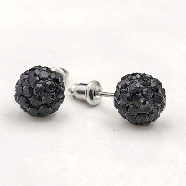 Csillogó fekete Swarovski kristállyal díszített shamballa gömb fülbevaló. A fülbevaló alapja ezüstszínű nemesacél. A kristályok ragasztott foglalatban helyezkednek el. Időtálló, mutatós ékszer. Antiallergén ékszer. Fülbevaló átmérője: 8 mm. A nemesacél ékszerek rendkívül népszerűek kedvező tulajdonságaik miatt. A nemesacél semmilyen nikkelsót nem bocsájt ki mag