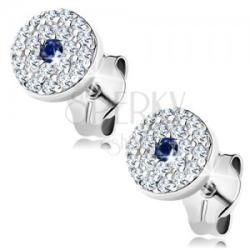 Fülbevaló 14K fehér aranyból csillogó karikával, mely gazdagon díszített apró kerek átlátszó cirkóniákkal. A közepébe csillogó sötétkék zafír van helyezve. A fülbevaló kapcsolása stekkeres. Átmérő: 6 mmSúly: 0,9 gFémjelzéssel ellátott. Az ár egy párra vonatkozik.