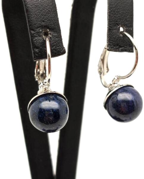 Dumortierit fülbevaló (golyó záras Ásvány fülbevaló) Egyedi ásvány ékszer.
