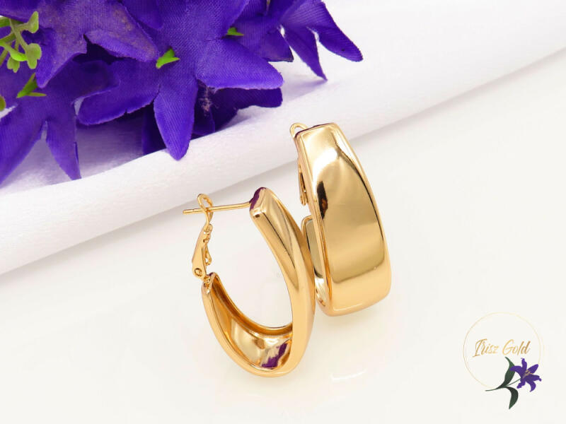Antiallergén fényes hosszúkás fülbevaló Nagyon mutatós darab Szin: 18K Méret: 30x11x15mm Zár: bedugós, biztonsági zárral Egybe van egy biztos nem esik szét nyitogatástól A forgalmazott divatékszerek alapanyaga nikkel és ólommentes ezért többnyire nem okoznak allergiás tüneteket, nyugodtan hordhatják fémérzékeny emberek is. Általában nem színezik a bőrt és más divat