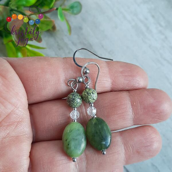 Ez a csodálatosan szép világoskék és fehér hegyikristály fülbevaló nemesacél akasztóval készült, tartós és időtálló darab. Azonban a hegyikristály és strasszos dísz miatt fürdésre nem ajánlott a viselése. A strasszos díszek arany-fehér csillogással szikráznak a napsütésben, a fehér és világoskék kristály ásványgyöngyök pedig roppantott eljárással készült