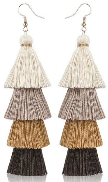 Quasten Fülbevaló Ez a fülbevaló a színek és textúrák fesztiválja. A fülbevalópár több réteg bojtból áll, amelyek más-más színűek. Ez a több színből álló dizájn nem csak elbűvölő, hanem energiával és vidámsággal teli, aminek köszönhetően ez a fülbevaló látványos kiegészítő lehet bármilyen alkalomra. Ez a fülbevaló szuper választás lesz azon hölgyek