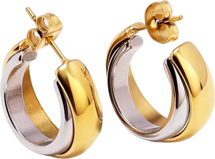 Ruth Fülbevaló Ez a pár fülbevaló tökéletes kombinációja a modern kialakításnak és a klasszikus bájnak. A fülbevalók egymásba rakott ezüst és arany színű fémlapokból készültek, amik együtt különleges stílust alkotnak. Ennek köszönhetően ez az ékszer kifinomult stílusú lesz. A színkombinációjának köszönhetően bátran kombinálható akár arany akár ezüst s