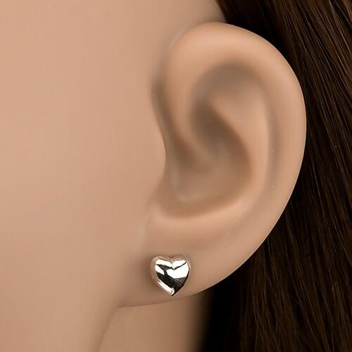Sterling ezüstből készült bedugós fülbevaló. A fülbevaló fejét szépen formázott, domború szívecske alkotja. A szív sima és tükörfényes kivitelben készült. A szív mérete: 7 x 6 x 2 mmA fülbevaló súlya: 0,74 gFémjelzéssel ellátott. Az ár egy párra vonatkozik.