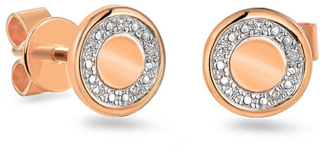 Kerek fülbevaló gyémántokkal, rózsaszín arany, 14K, modell IZBR849R