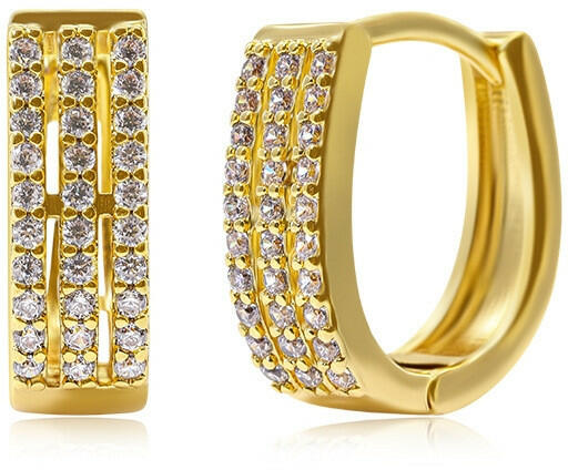 Cikkszám: 0742 Kapcsos fülbevaló: - arany bevonattal, - áttetsző cirkónia kristályos díszítéssel. Súlya: 4,1 g / pár. Mérete: 1, 7 cm x 1, 4 cm. Szélessége: 0,6 cm. Elegáns, gyönyörű cirkónia kristályos divatékszer ! A megadott méreteket kérjük vegyék figyelembe !