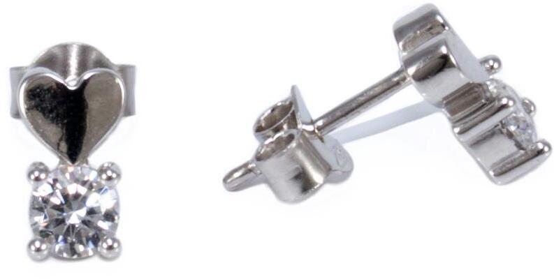 Kedves kis darab, esz acirkónia kővel, felette pici szív motívummal díszített, ródiummal bevont arany fülbevaló.