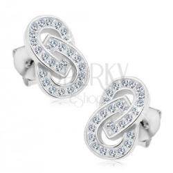925 ezüst fülbevaló két szélesebb cseppet ábrázoló, összekapcsolt körvonal alakjában. Mindkét körvonal beültetett, átlátszó cirkóniákkal van díszítve, a körvonal széle pedig fényes és sima. Biztonságos viselését stekker teszi lehetővé. Fülbevaló méretei: 6 x 11 mmFülbevaló súlya: 1,6 gFémjelzéssel ellátott. Az ár egy párra vonatkozik.