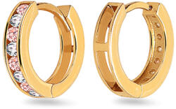 A színes kövekkel díszített gyerekfülbevalók sárga aranyból készültek. Az ékszert a váltakozó tiszta és világos rózsaszín cirkóniák uralják.
