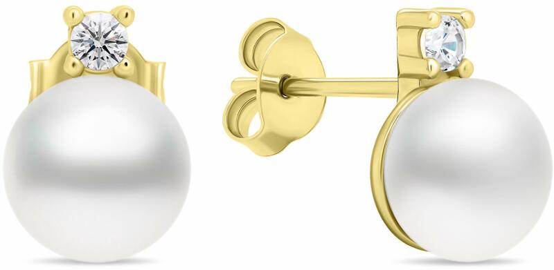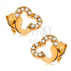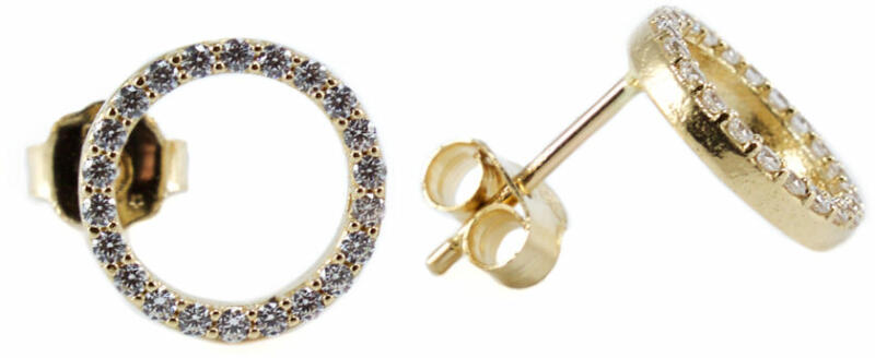 Modern stílusú, körben cirkónia kövekkel díszített, mutatós sárga arany fülbevaló.