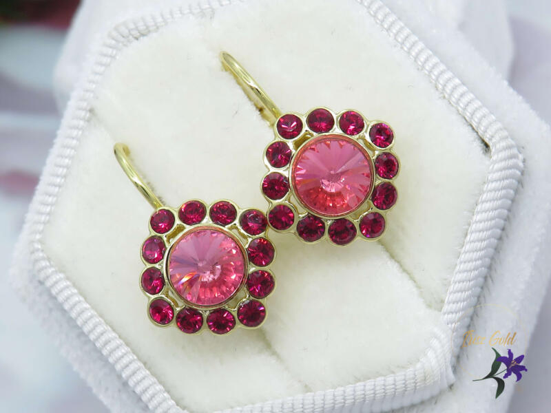 Bőrbarát Xuping Swarovski köves fülbevaló Gyönyörű virág alakú gondosan csiszolt kövekből álló fülbevaló Körbe kis pink kövekkel középen rózsaszín kővel Szin: 14K Méret: 22x12mm Zár: klasszikus mélysége 12 mm A forgalmazott divatékszerek alapanyaga nikkel és ólommentes ezért többnyire nem okoznak allergiás tüneteket, nyugodtan hordhatják fémérzékeny emberek is