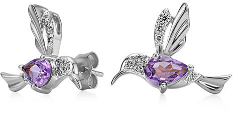A kolibri fülbevaló az elegancia és a játékosság egyedülálló kombinációja. A lila ametiszttel kirakott és gyémántokkal körülvett kolibri motívum fényűző és finom dizájnt alkot, amely eredetiségével lenyűgöz. A fehér arany tökéletesen kiemeli a drágakövek csillogását. A pillangós zár nemcsak biztonságot, hanem kényelmet is garantál. Nem kell aggódnia, hogy a f