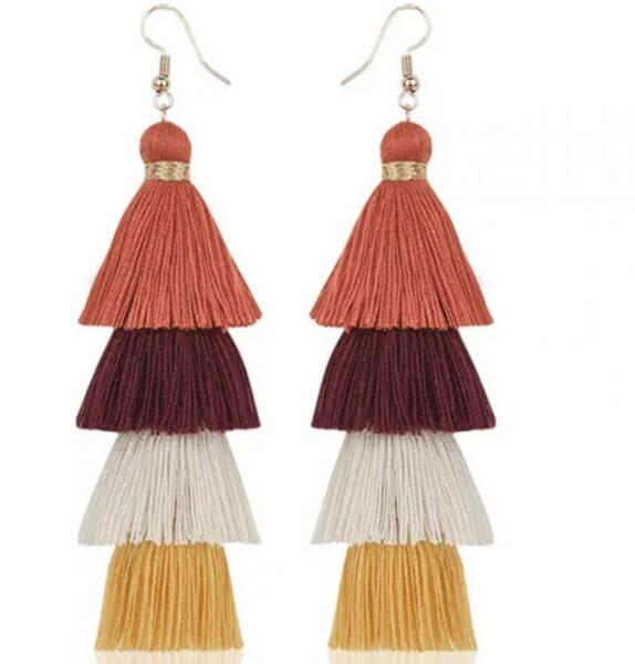 Quasten Fülbevaló Ez a fülbevaló a színek és textúrák fesztiválja. A fülbevalópár több réteg bojtból áll, amelyek más-más színűek. Ez a több színből álló dizájn nem csak elbűvölő, hanem energiával és vidámsággal teli, aminek köszönhetően ez a fülbevaló látványos kiegészítő lehet bármilyen alkalomra. Ez a fülbevaló szuper választás lesz azon hölgyek