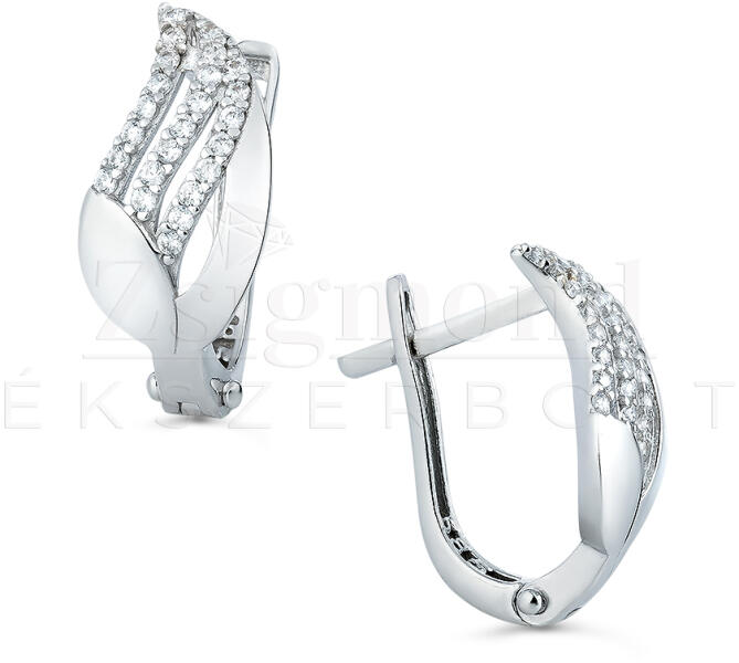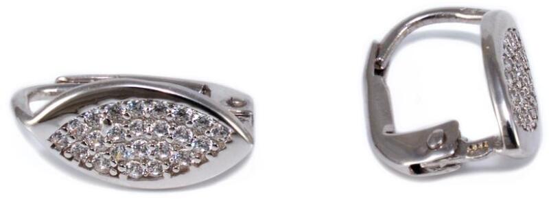 Modern stílusú, kedvelt fazonú, cirkónia kővel ékített, ródiummal bevont, ovális fehérarany fülbevaló.