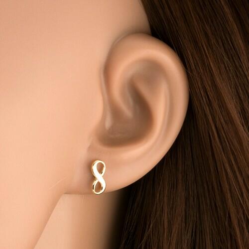 Fülbevaló 9K sárga aranyból végtelen szimbólum alakban - fekvő nyolcas. A fülbevaló felülete mérsékelten kidomborodik, sima és fényes, miközben a hátsó oldal üreges. Biztonságos viselését stekker biztosítja. A fülbevaló méretei: 10 x 4 mmA fülbevaló súlya: 0,35 gFémjelzéssel ellátott. Az ár egy párra vonatkozik.