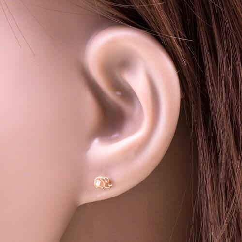 Az 585 arany fülbevaló apró elefánt alakú felemelt ormánnyal, amelynek a fülei és a szemei finoman gravírozottak. Az elefánt feje és füle fényes, törzse matt felületű és egy beültetett átlátszó cirkónia díszíti. Biztonságos viselését stekker teszi lehetővé. Fülbevaló méretei: 5 x 3 mmFülbevaló súlya: 0,3 gFémjelzéssel ellátott. Az ár egy párra vonatkozik.