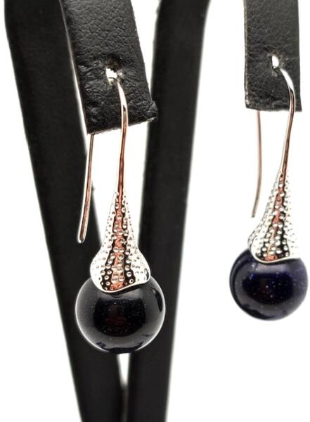 Goldstone fülbevaló (golyó kürt kék mintás Ásvány fülbevaló) Egyedi ásvány ékszer.