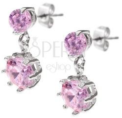 A kis bedugós fülbevaló sterling ezüstből készült. A fejet kör alapba illesztett rózsaszínű kő alkotja. A nagyobb kerek cirkonköves függő karikával csatlakozik a fejhez. A biztonságos viselést a stekker biztosítja. Méret: 6 x 15 mmA fülbevaló súlya: 1,94 gAz ár egy párra vonatkozik. Fémjelzéssel ellátott.