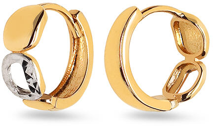 A gyűrű alakú fülbevaló kombinált aranyból készült. A fülbevaló felületkezelése magasfényű, ródium bevonattal és gravírozással kombinálva.