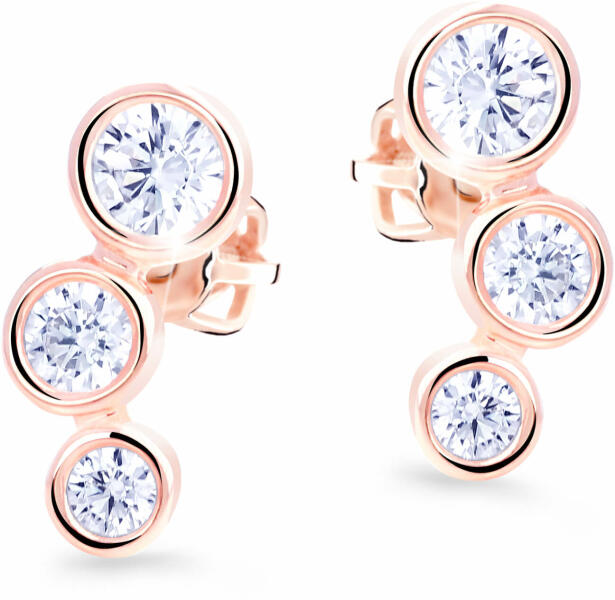 375 arany fülbevaló szabálytalan szívvel, enyhén kidomborodó fényes felszínnel aranyrózsaszínben, miközben a szív felső részén egy hosszúkás lekerekített szár található csepp kivágással és két átlátszó cirkóniával. Beszúrós kapcsolás. A fülbevaló méretei: 4 x 10 mm A fülbevaló súlya: 0,3 gFémjelzéssel ellátott. Az ár egy párra vonatkozik.