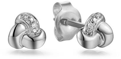 Egy kivételes pár szerencsehozó csomó varázst, csillogást és eleganciát kölcsönöz. Az arany legfehérebb tónusait négy, összesen 0,010 ct súlyú, H színű és SI1 tisztaságú gyémánt szikrája világítja meg. A használt csat egy masni. A kövek az iZlato® által hitelesített valódiak.