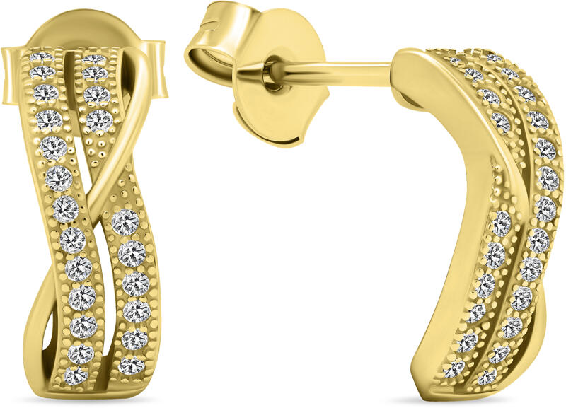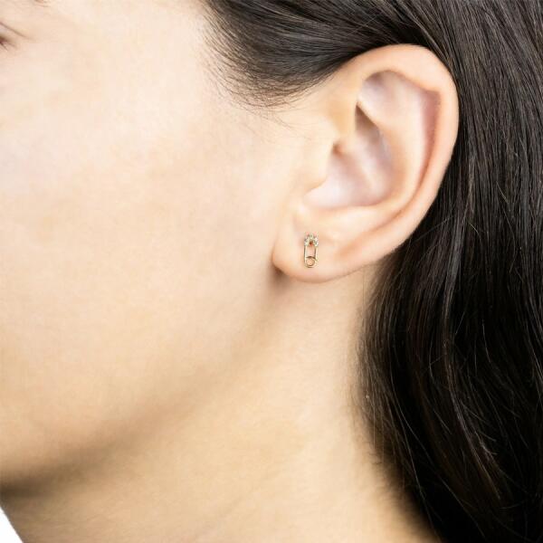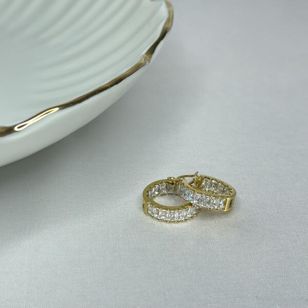 Emeld ki stílusodat ezzel a gyönyörű arany nemesacél karika fülbevalóval, amelyet ragyogó cirkónia kövek díszítenek. A klasszikus karika dizájnt modern elegancia jellemzi, hiszen a finoman megmunkált cirkónia kövek gyémántszerű fénnyel ragyognak, vonzóvá téve ezt a fülbevalót bármilyen alkalomra. Az arany bevonatú rozsdamentes acél biztosítja a tartósságot és ellen