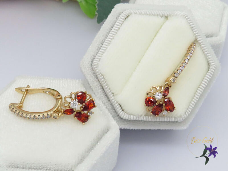 Antiallergén gyönyörű piros virágos csüngűs fülbevaló Szin: 18K Méret: 30x14x-10mm Zár: francia kapocs mélysége 12mm A forgalmazott divatékszerek alapanyaga nikkel és ólommentes ezért többnyire nem okoznak allergiás tüneteket, nyugodtan hordhatják fémérzékeny emberek is. Általában nem színezik a bőrt és más divatékszerekhez képest nagyságrendekkel jobb kopásálló