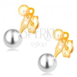 Az 585 arany fülbevaló tükörfényes és sima felületű. A fejet egy kisebb golyó alkotja. A pálcához egy horog kapcsolódik, amely tenyésztett gyöngyben végződik és a fül hátoldaláról csatlakozik. A gyöngy tenyésztett, fehér színű, kerek és enyhén lapított alakú. A rögzítésre szolgáló pálcának a felső részében három nyílás található, a teljes hossz beállí